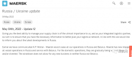 損失超7億美元!馬士基宣布全面退出俄羅斯和白據(jù)悉,馬士基決定完全退出在俄羅斯的業(yè)務(wù),這包括在俄羅斯境內(nèi)外的服務(wù)以及在俄羅斯境內(nèi)的資產(chǎn)(碼頭、倉(cāng)庫(kù)等),且不在俄羅斯和白俄羅斯開(kāi)展任何新業(yè)務(wù)。 在俄烏沖突爆發(fā)不久后...查看詳情 -